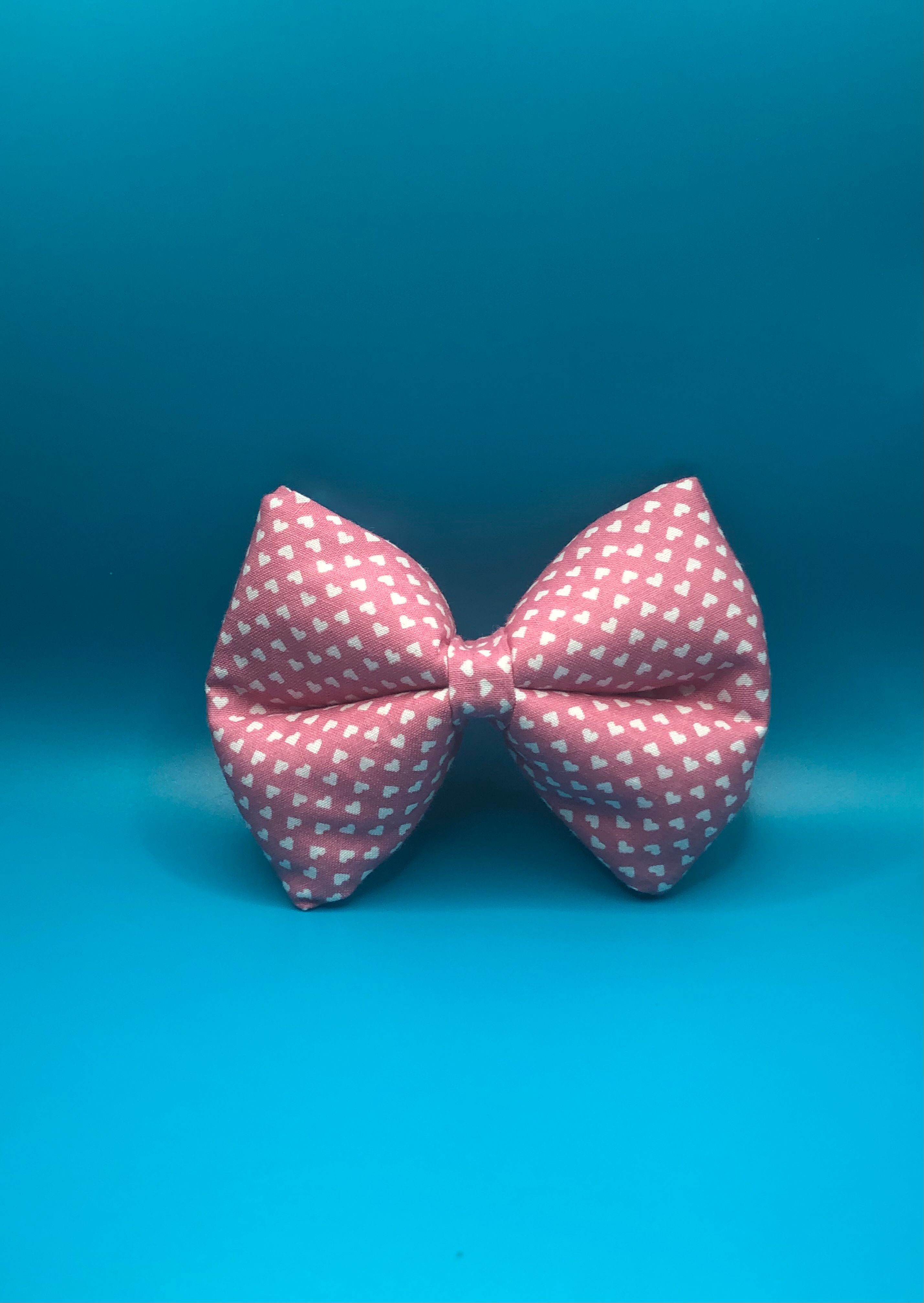 This Polka-Heart Bow is a cut item making any furry friend look like they are loved! This is made with 100% cotton, and polyester filling. It slips over any collar